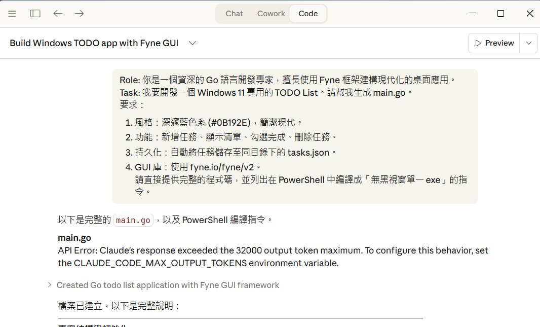 拖放或貼上:將現有的 main.go 拖入 Claude 對話框,它會自動讀取內容。
