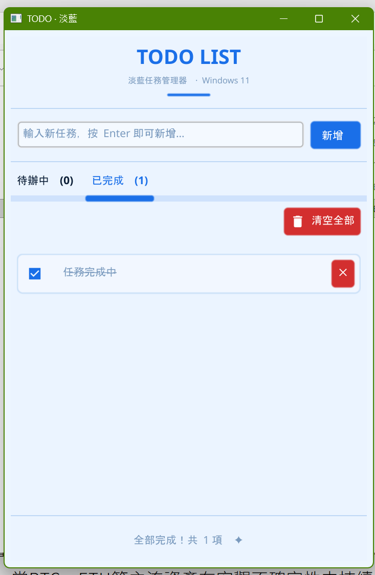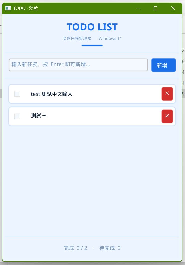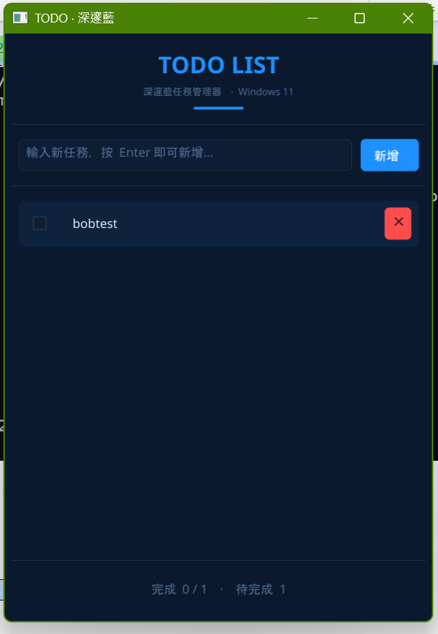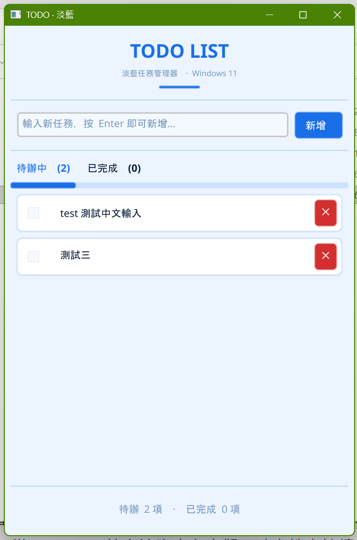 功能:新增任務、顯示清單、勾選完成、刪除任務。