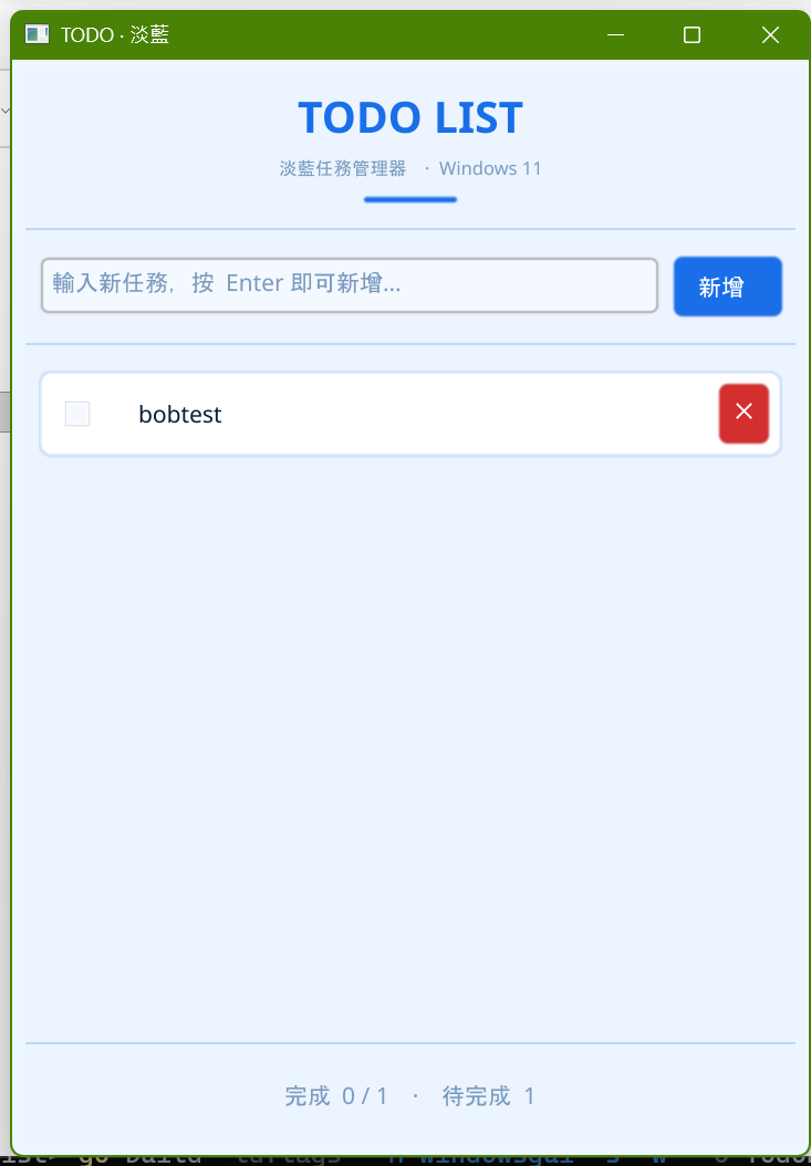 用 Go 語言寫一個簡單桌面 TODO List 應用,使用 fyne 或 walk 做 GUI。