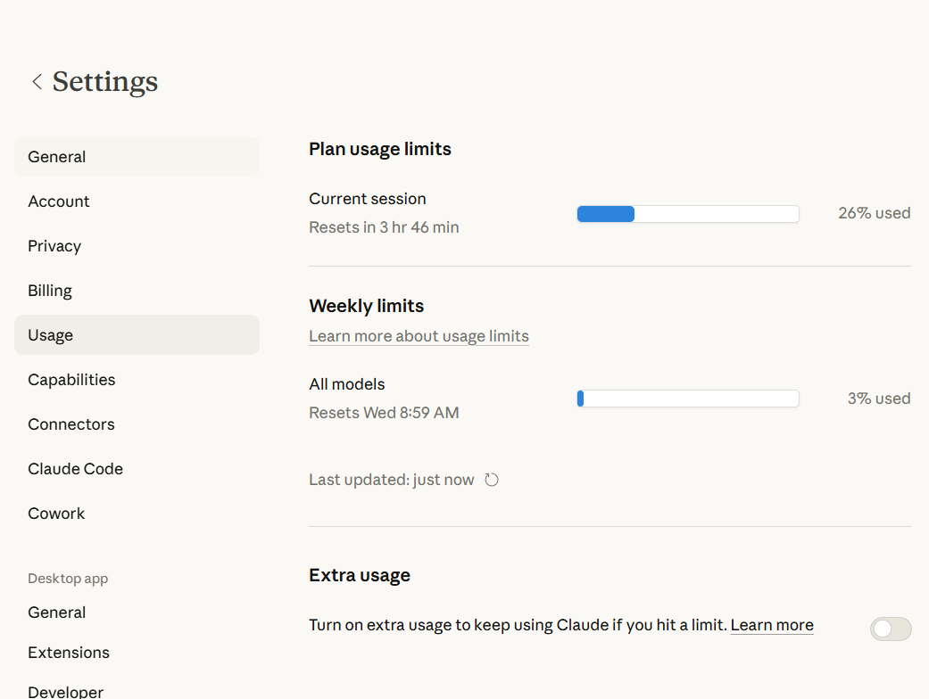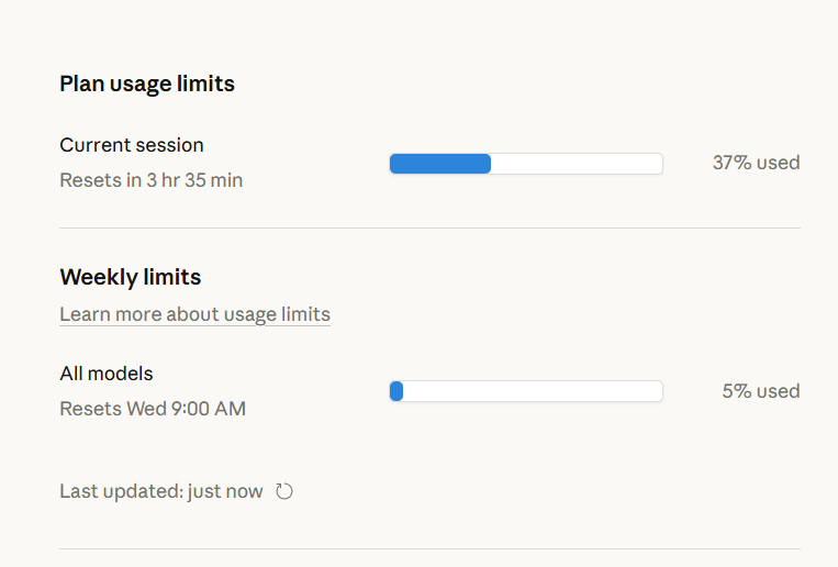 看一下,這個工作,花了26%/5H, 3%/周 的用量。